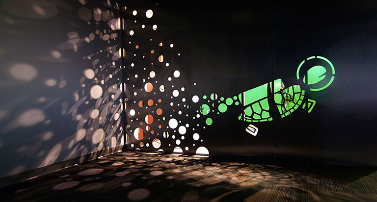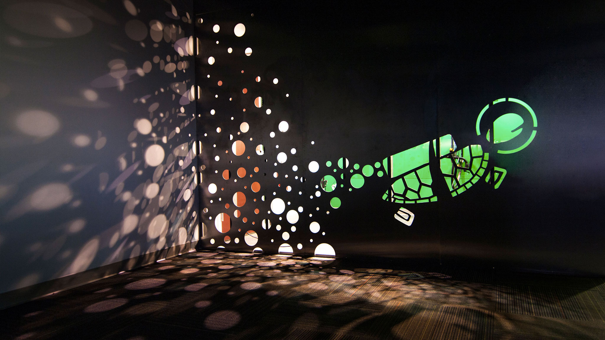 This west-coast based tech company required a corporate office space that would communicate their company culture to their employees.As a maker of open-source network software, their values touch on transparency and open collaboration. These qualities are reflected in the workspace for their tight-knit team, championed by their mascot: Rocket Turtle. The design of this fitup is inspired by electronic circuit pathways: each program element is visually expressed as a simple volume which plugs into the office framework. The conference and open break area define an all-hands space, forming the social center of the office.