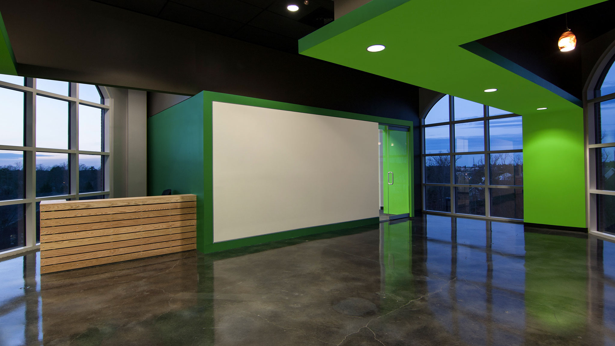 This interior renovation for a leadership development and training organization is based on the concept of creating an “interior campus” environment in order to form dynamic and collaborative workspaces and provide spaces for client training within the workplace, satisfying all of the project’s programmatic requirements. In this way the form and space of the interior architecture builds and fosters company culture.