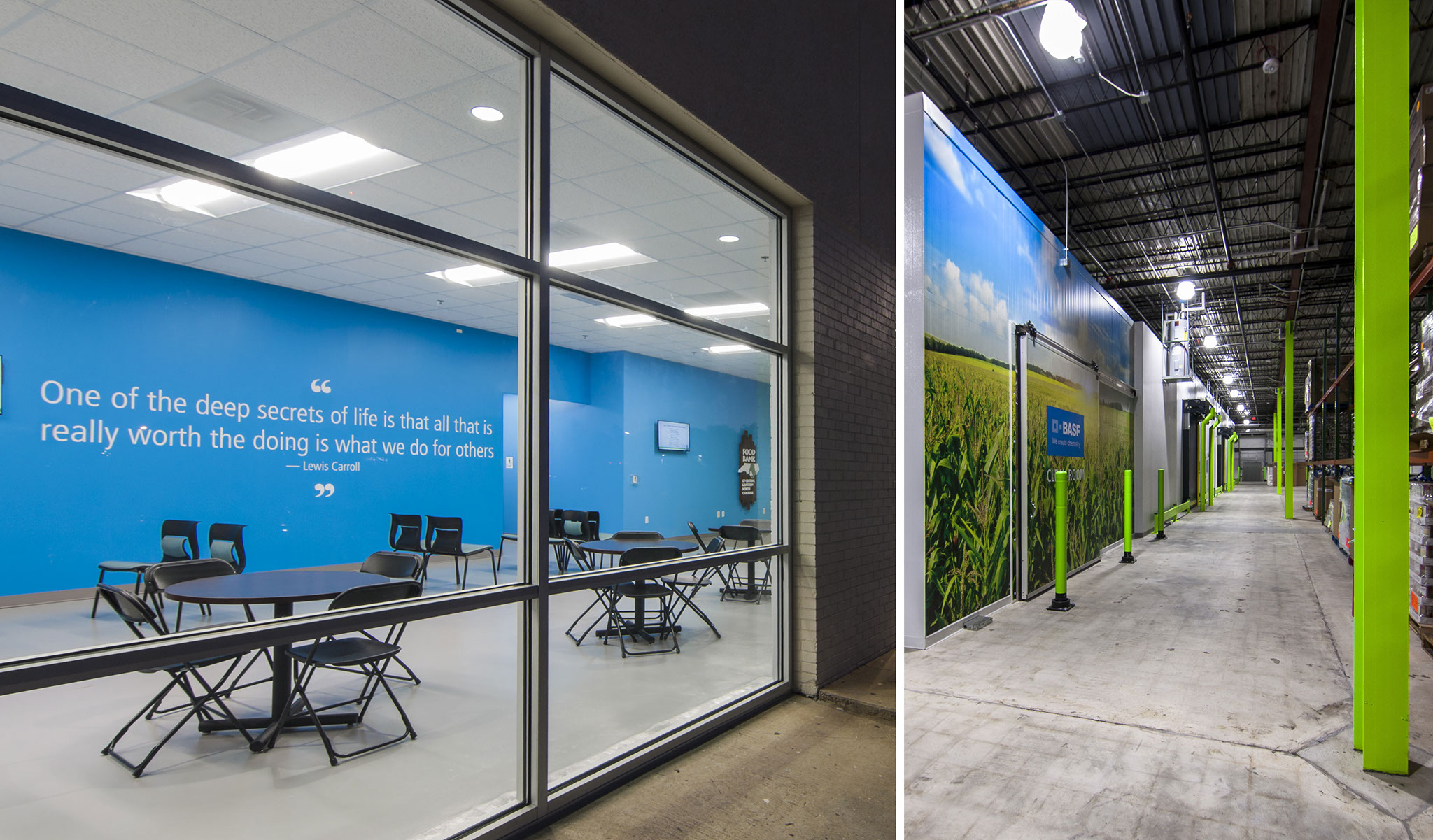 The Food Bank of Central and Eastern North Carolina serves over 600,000 hungry NC residents and moves over 60 million pounds of food each year. Facing severe infrastructure shortages, Food Bank CENC was forced to turn away millions of pounds of food prior to purchasing this property near Downtown Raleigh. This resulting $6M renovation project saw the gutting and revitalization of a 1960’s furniture store and automotive tire shop into the new headquarters and distribution facility of one of NC’s largest non-profit organizations.