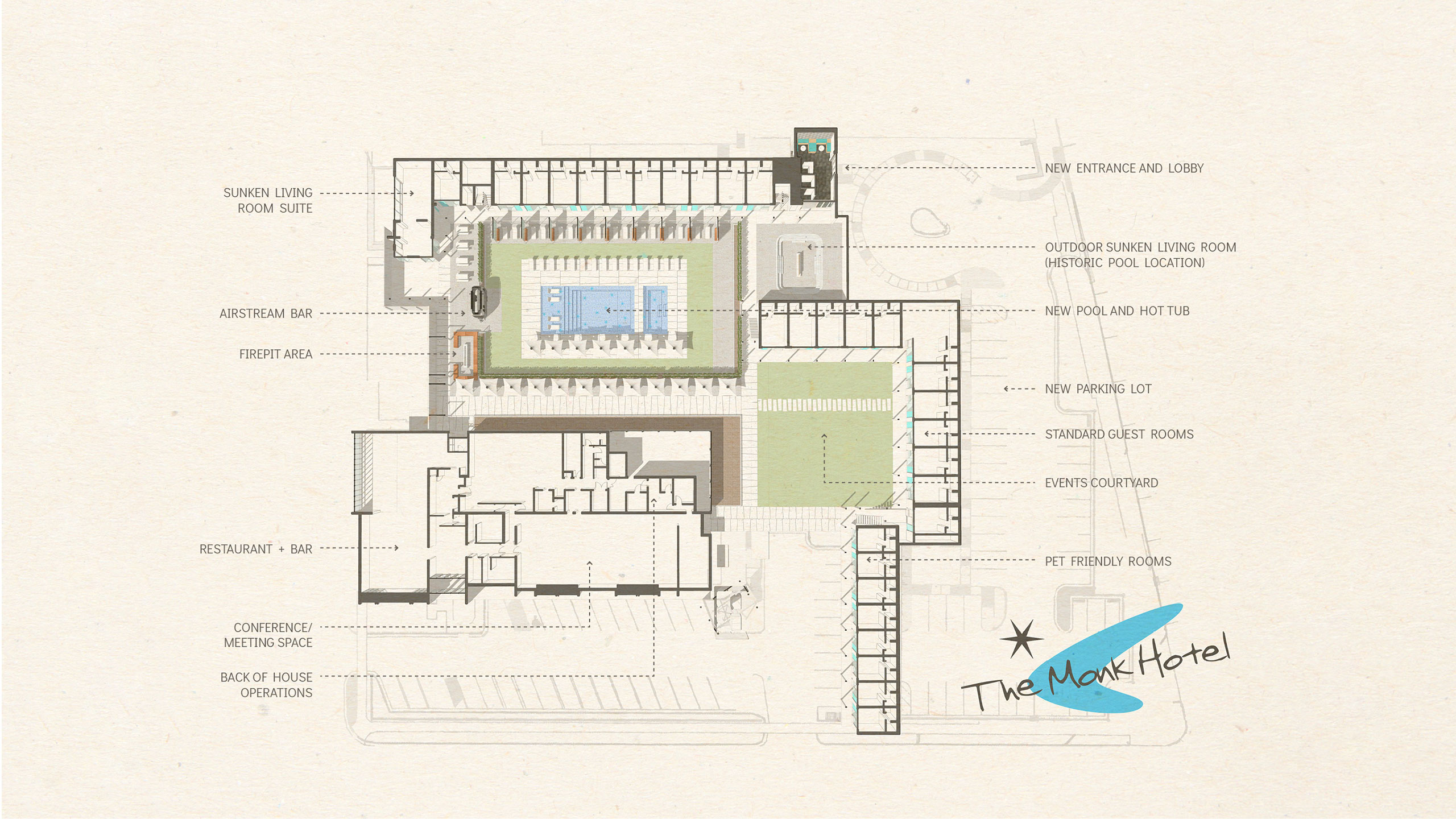 Sector 3 recently completed designs for a $3.5M hotel renovation in Rocky Mount, NC. Set for construction in early 2019, this historic structure is positioned as a mid-century modern-themed motor lodge style resort.