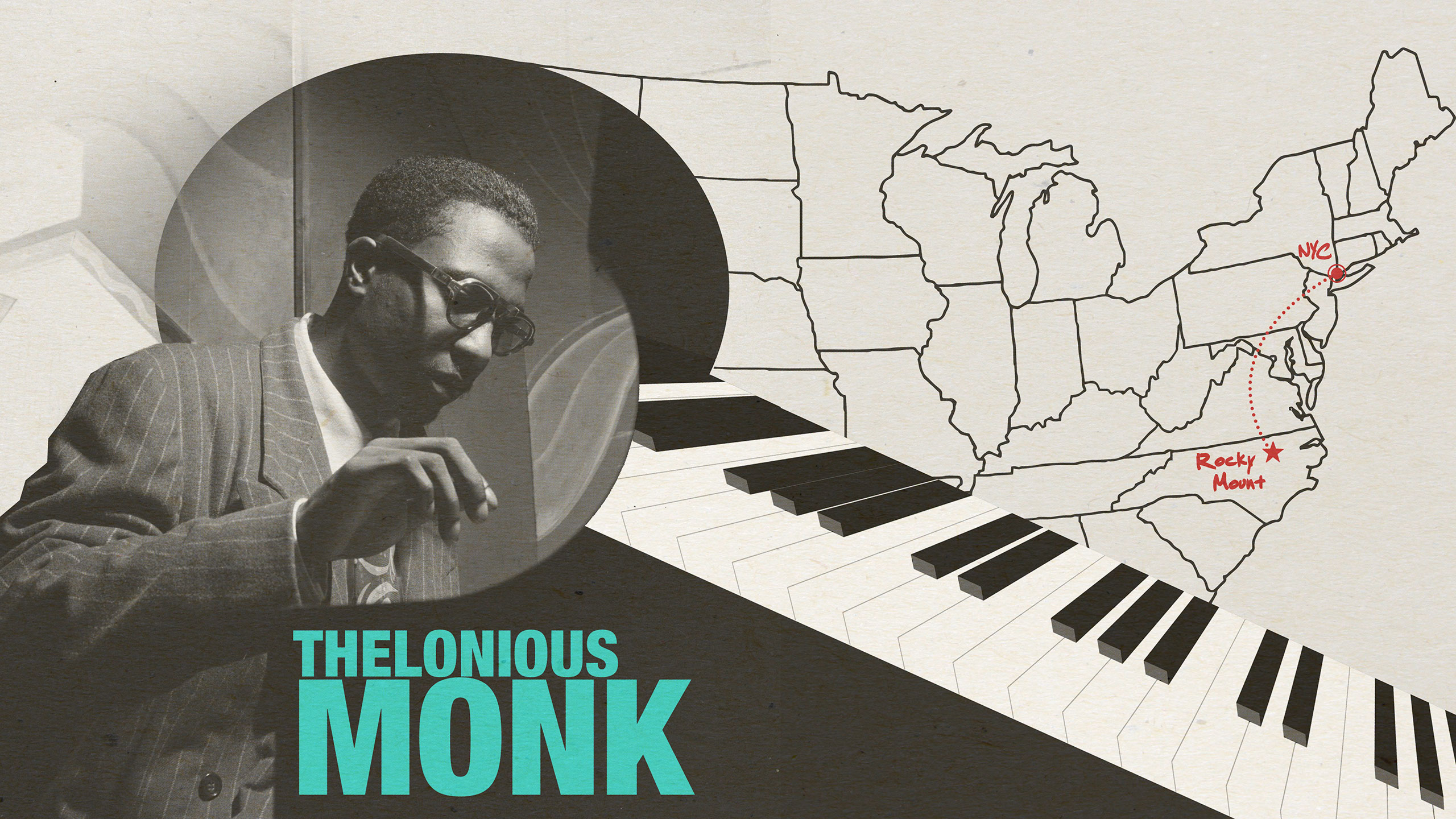 Thelonious Monk, the great Jazz pianist and composer, was born in Rocky Mount, North Carolina in 1917, and grew up in the neighborhood nearby the hotel. Though he moved to New York at a young age, his "Southern roots had an important influence on his music." (NPR) Photo courtesy of the Library of Congress.
